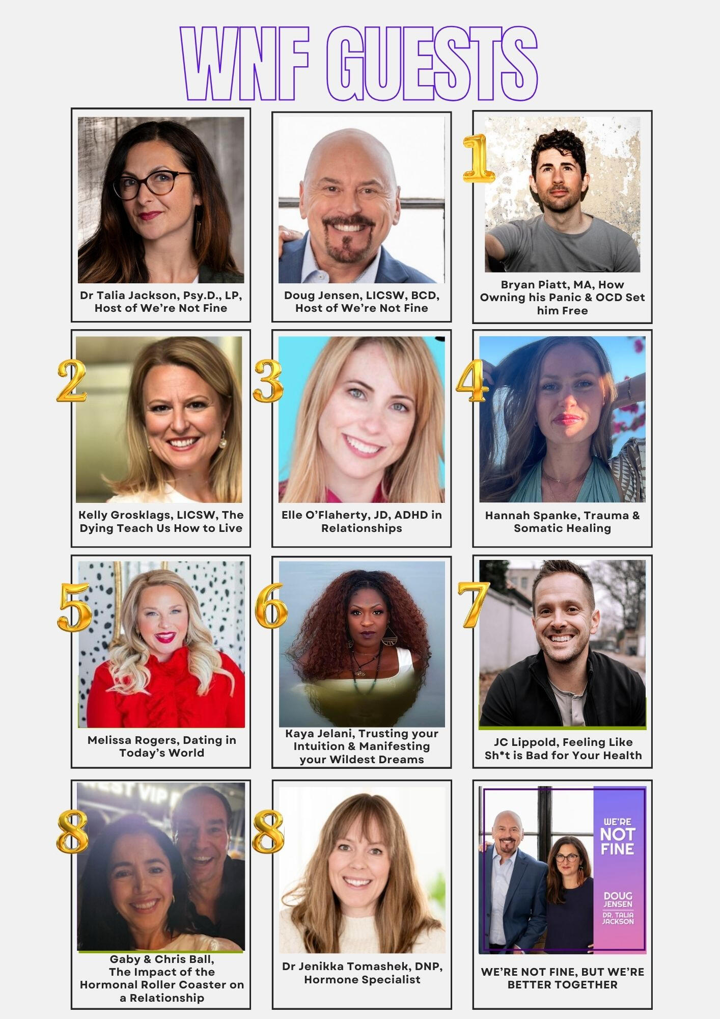 WNF, the podcast is hosted by Dr. Talia Jackson, Licensed Psychologist, Clinical Supervisor and Group Practice owner and Doug Jensen, LICSW, psychotherapist, board-certified diplomate and co-owner of a Tattoo Shop. Their dynamic, honest, and humorous personalities create a safe space for tackling tough topics, from ADHD in relationships, OCD, Personality Disorders, Dating in Today's World to navigating Trauma and building Resilience.